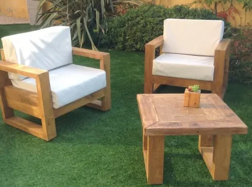 كراسي بلكونة خشب موسكي مع ترابيزة أوف وايت أنيقة