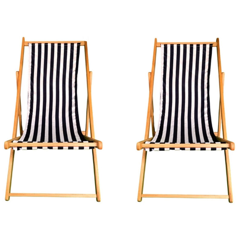 كرسي بحر خشب زان أسود وأبيض عملي ومتين للاستخدام الخارجي