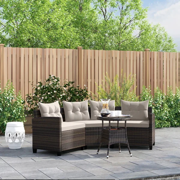 جلسات خارجية للمنازل رتان بني عشوائي مع قماش طحيني – أثاث خارجي مودرن