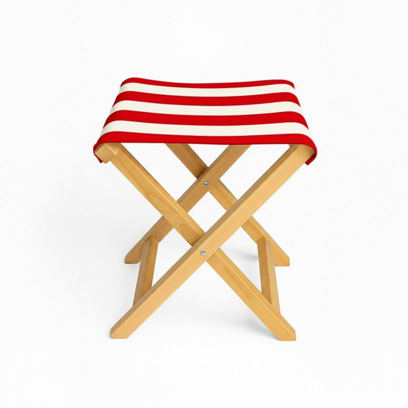 كرسي بحر قابل للطي خشب زان باللون الأزرق والأبيض