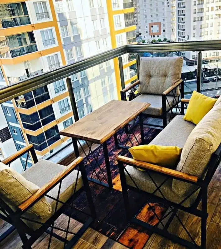 طقم كراسي بلكونة صوفا وبانكيت للبلكونة بأناقة مودرن