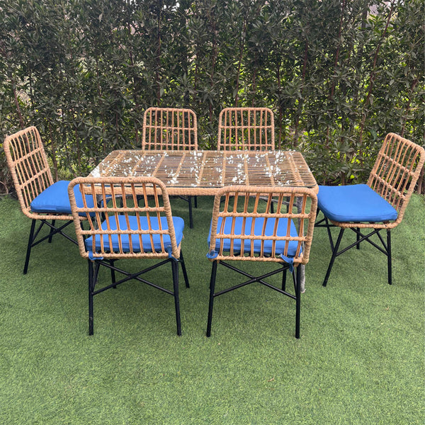 كراسي سفرة مودرن طقم رتان 6 أفراد فخم مع تنجيد تركواز