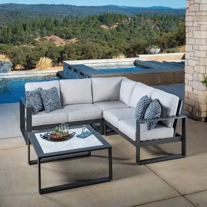 جلسات خارجية طقم اثاث خارجي مودرن قماش رمادي غامق