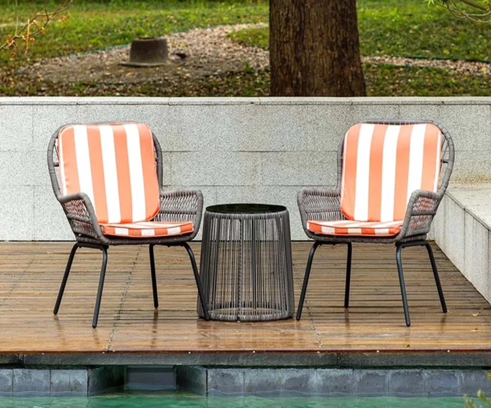 كراسي حديقة رتان رمادي مع قماش أورانج – طقم عصري فاخر