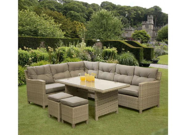ركنة رتان كريمي لجلسات خارجية للمنازل | أثاث خارجي عصري مقاوم للصدأ