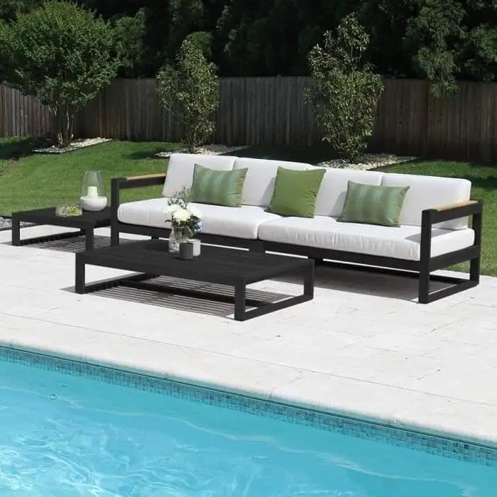 جلسات حدائق خارجية باللون الرمادي الغامق من طقم اثاث خارجي أنيق ومتين
