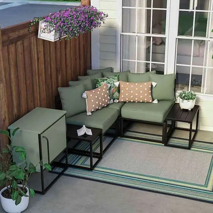 ركن بيتي حديد مودرن باللون الأخضر من اثاث معدني مثالي للبلكونات