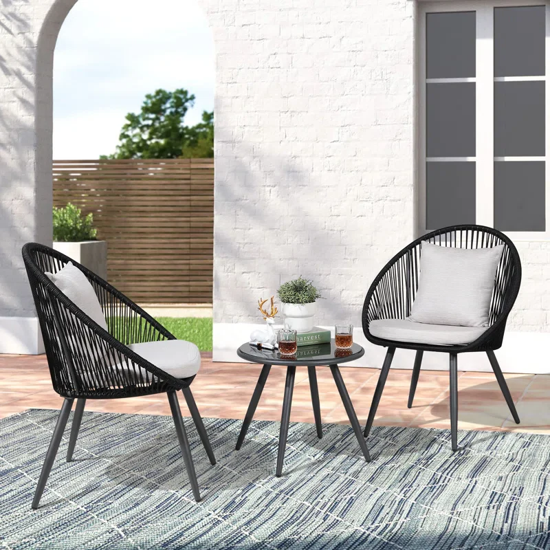 كراسي حديقة بحبال سوداء مع ترابيزة بتصميم عصري وأنيق
