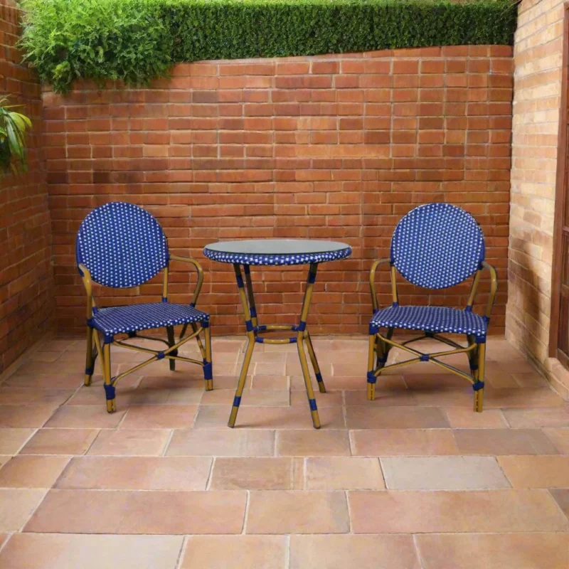كراسي بلكونة رتان عملي مع ترابيزة حديد مطلي للعوامل الجوية
