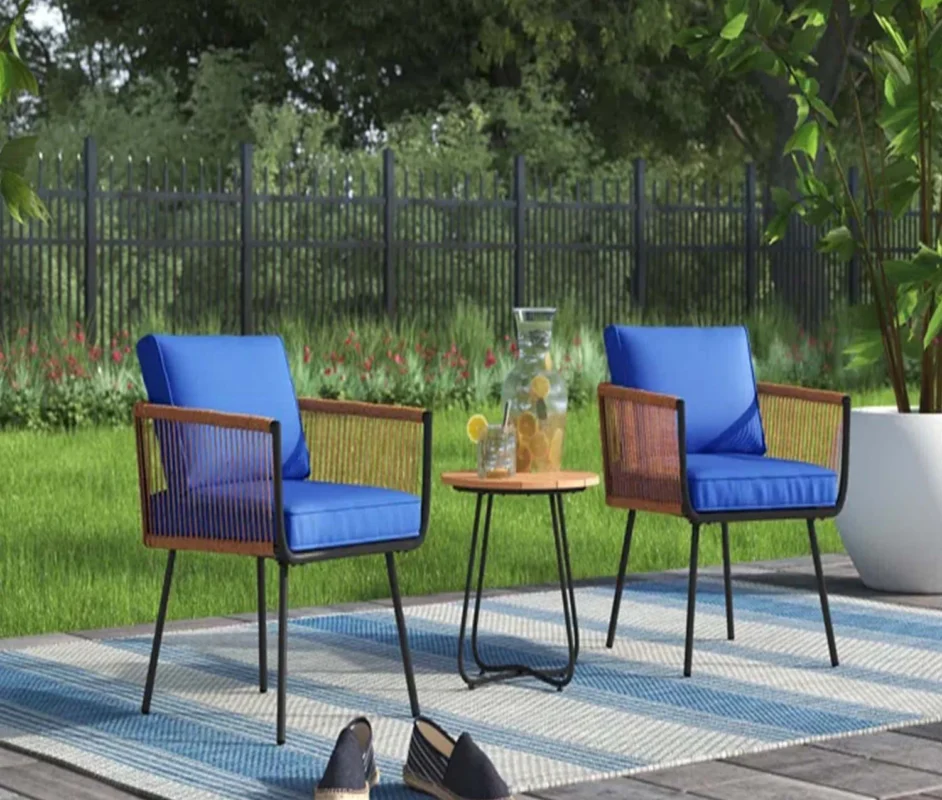 كراسي بلكونة طقم جلوس معدني مع لمسات خشبية ووسائد مريحة