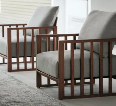 كراسي بلكونة طقم جلوس معدني مع لمسات خشبية وأريكة مريحة