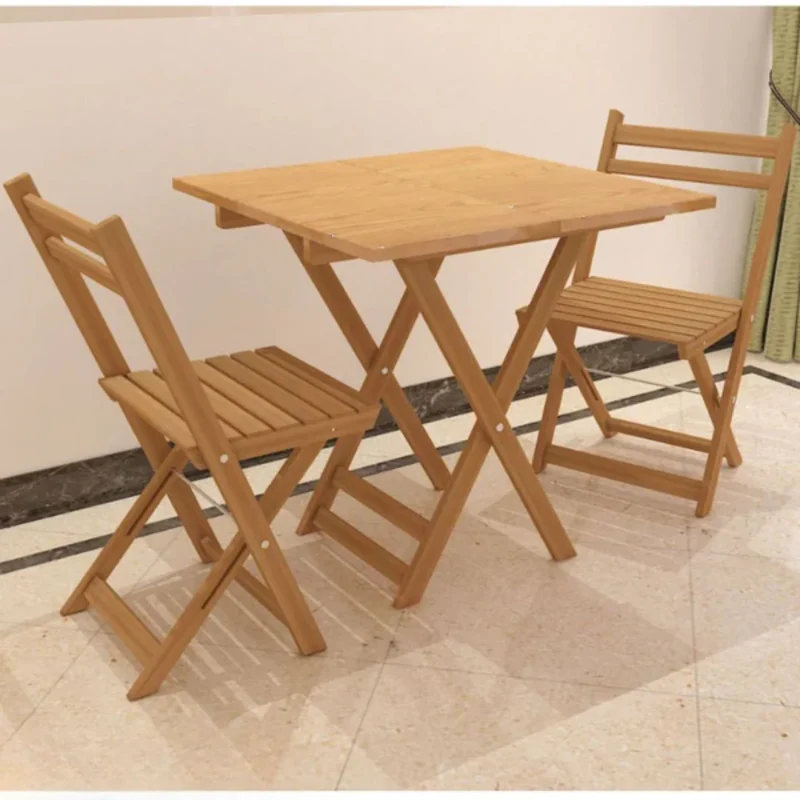كرسي بحر خشب زان مع ترابيزة أستر فاتح طقم سفرة مصغر