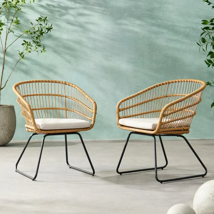 كراسي راتان بيج مشبح مع قماش أوف وايت – تصميم عصري مريح