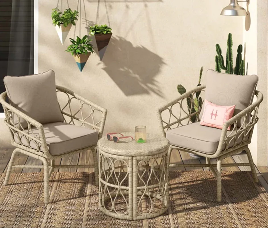 كراسي راتان طقم اثاث خارجي رتان طحيني بتصميم عصري