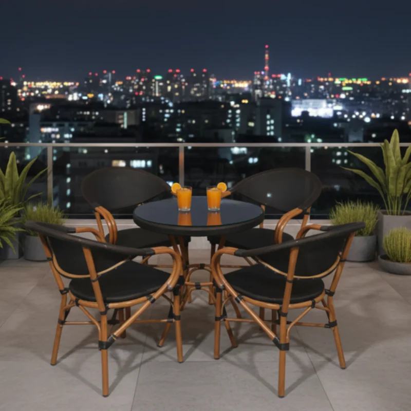 مجموعة كراسي مصممة للجلسات الخارجية بكل أنواعها، تجمع بين الراحة والشكل العصري.