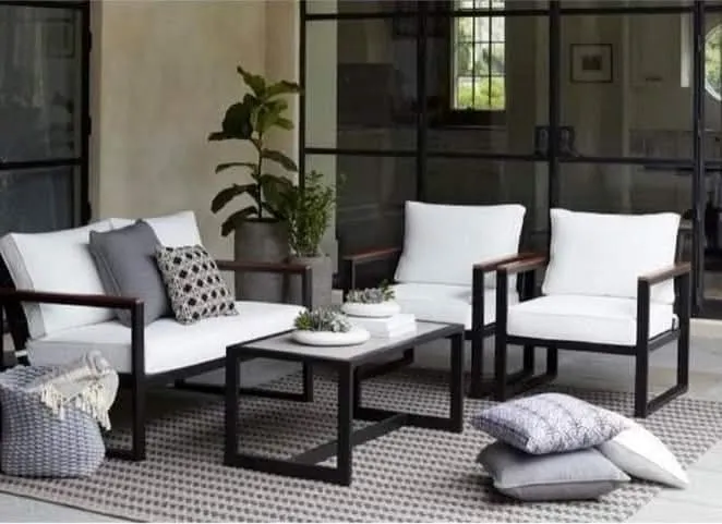 جلسات خارجية للمنازل من الرتان الأسود والأوف وايت | اثاث خارجي مودرن