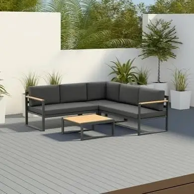 جلسات حدائق خارجية رمادي غامق من اثاث خارجي معدني وخشب طبيعي