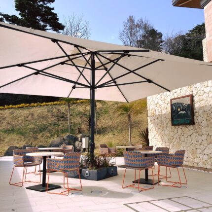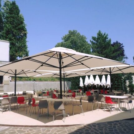 شماسي كافيهات برايم أمبريلا 400 مقاس 4×4 متر بتصميم متين وخامات مقاومة للماء والأشعة، مثالية للاستخدام التجاري.