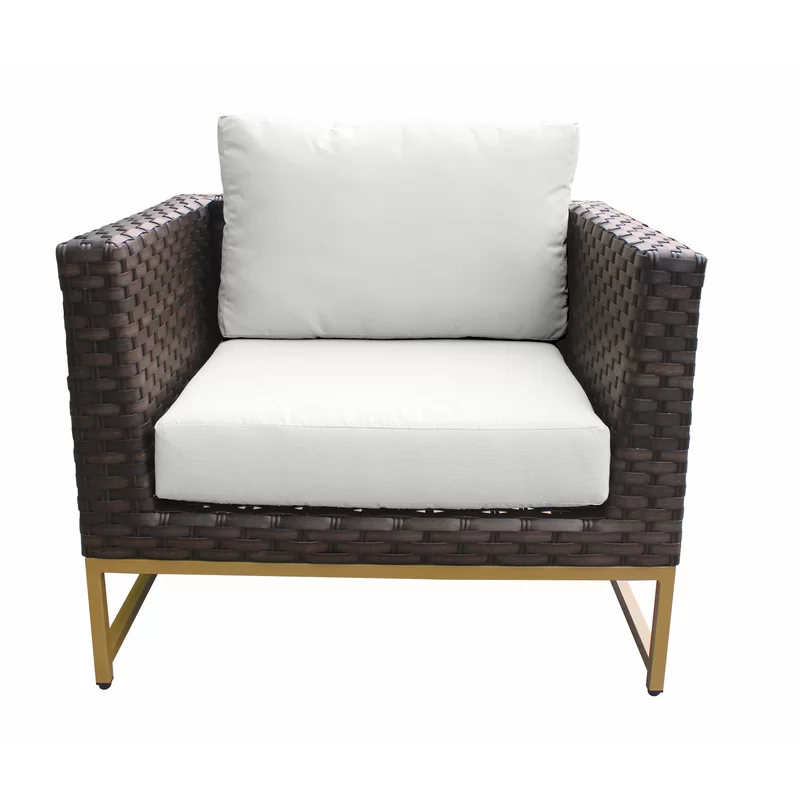 اللون يأتي بمزيج فاخر من الرتان الأسود في الذهبي مع قماش أوف وايت يمنح المكان إطلالة راقية وجذابة.