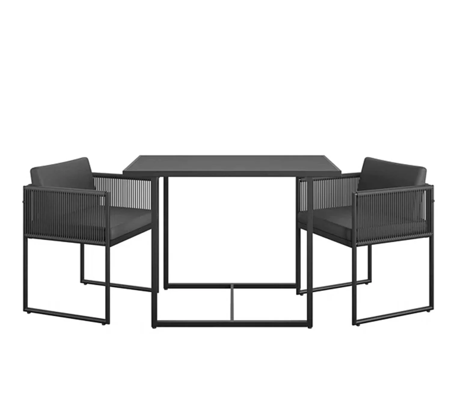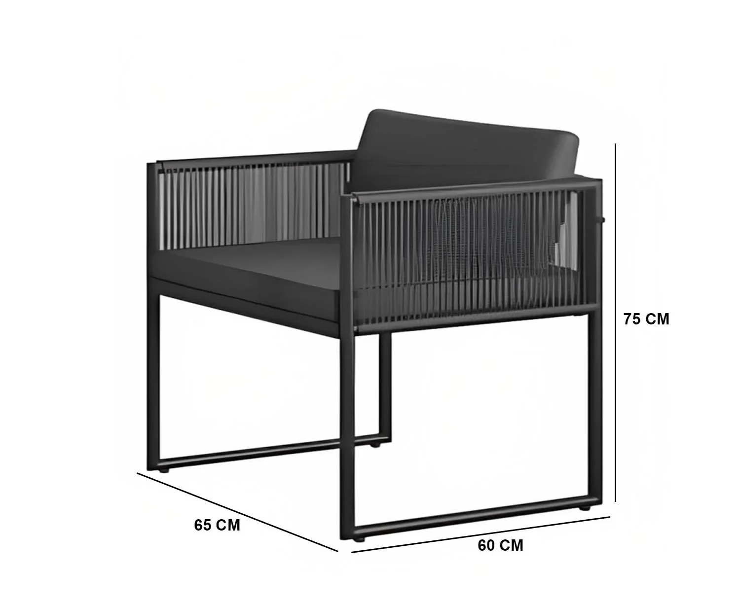 تصميم مودرن عصري يجمع بين الأناقة والعملية، مع ألوان متناسقة: رتان أسود مع قماش رمادي غامق أنيق، مناسب لجميع المساحات الداخلية والخارجية.