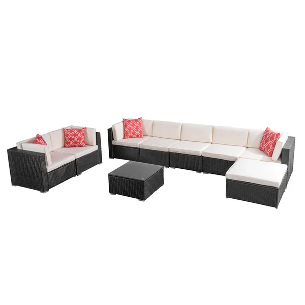جلسات خارجية للمنازل من رتان بيور باللون الأسود والذهبي – أثاث خارجي عصري
