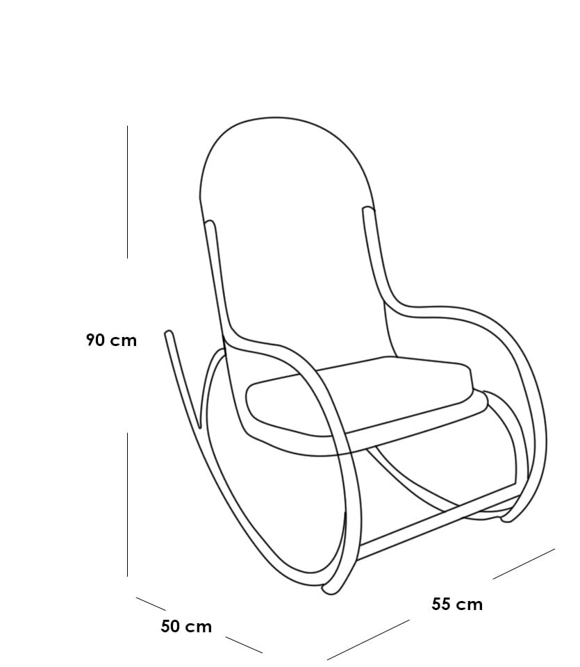 يتميز الكرسي بتصميم معلق عملي وحديث، مع أبعاد مدروسة لراحة أكبر: ارتفاع 90 سم، عرض 55 سم وعمق 50 سم. اللون متناسق وراقي ليمنح لمسة جمالية لأي بيئة خارجية سواء كانت حديقة أو شرفة.
