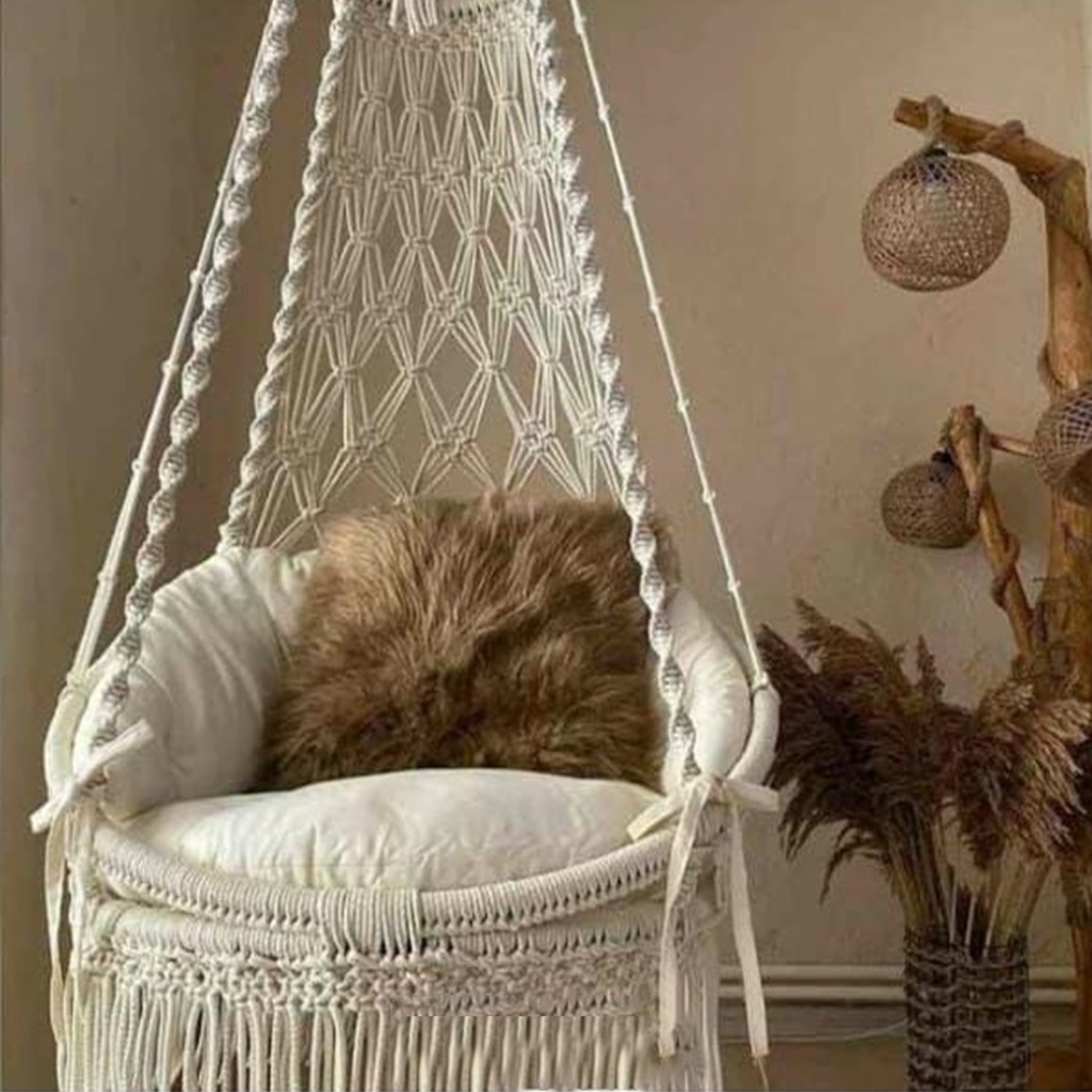 أضف لمسة من الأناقة والراحة لمساحتك مع مرجيحة معلقة مكرمية تجمع بين الجودة والمتانة.