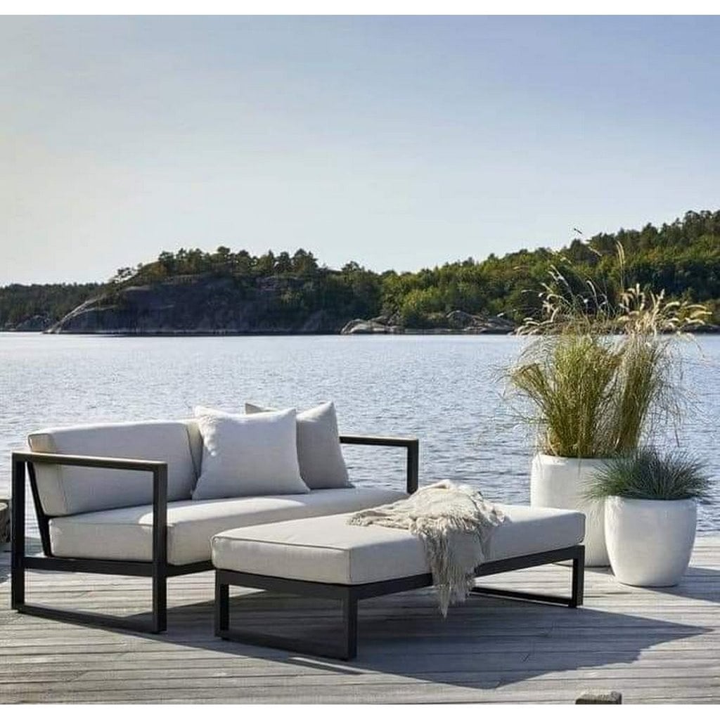 تصميم مودرن بسيط وفاخر في نفس الوقت، باللون الأسود الأنيق مع وسائد أوف وايت تضيف تباينًا بصريًا راقيًا. مناسب للديكورات الخارجية والداخلية الحديثة ويعطي لمسة فخامة لأي مساحة.