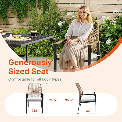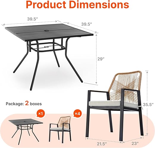التصميم يجمع بين الأسلوب العصري واللمسات البوهيمية الراقية، مع تشطيب راتان يدوي يعطي مظهرًا طبيعيًا جذابًا. اللون Beige الهادئ يجعل الطقم مناسبًا لمعظم الديكورات الخارجية دون أي تعقيد. الطاولة مربعة الشكل بتصميم يوفر مساحة عملية لتناول الطعام أو المشروبات.