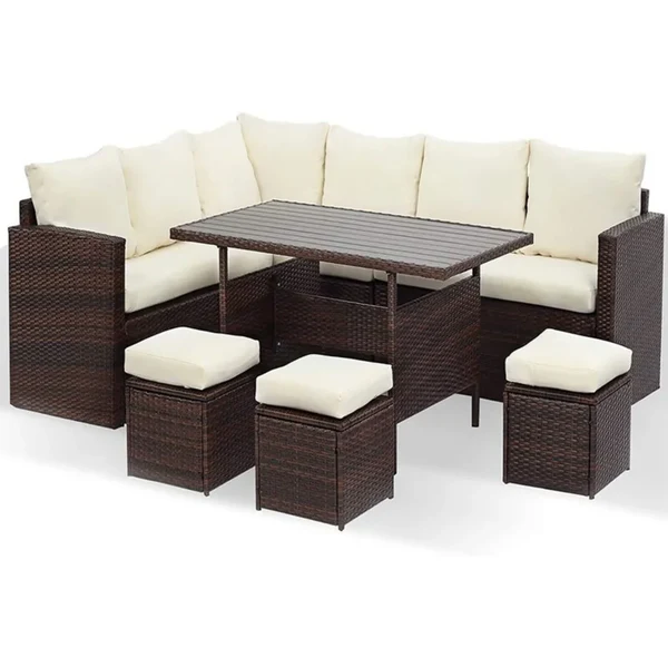 جلسات حدائق خارجية رتان بني أوف وايت بتصميم فاخر | أثاث خارجي