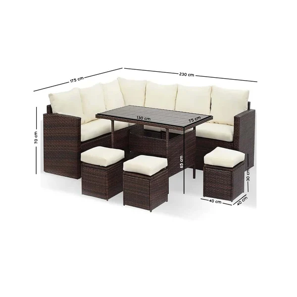 تصميم الركنة مودرن أنيق باللون رتان بني عشوائي مع قماش أوف وايت يمنح مظهرًا طبيعيًا دافئًا يناسب جميع أنماط الديكور الخارجي.