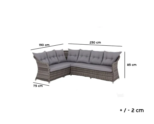 تم تصنيع الركنة من رتان بيور معالج للشمس والمياه ومجدول على هيكل حديد مطلي بدهان إليكتروستاتيك مقاوم للصدأ.