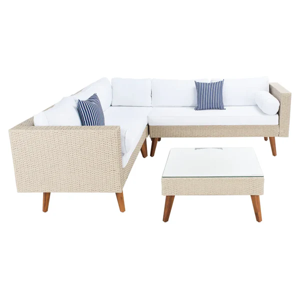 جلسات خارجية طقم أثاث خارجي رتان بيج مشبح – تصميم مودرن فاخر
