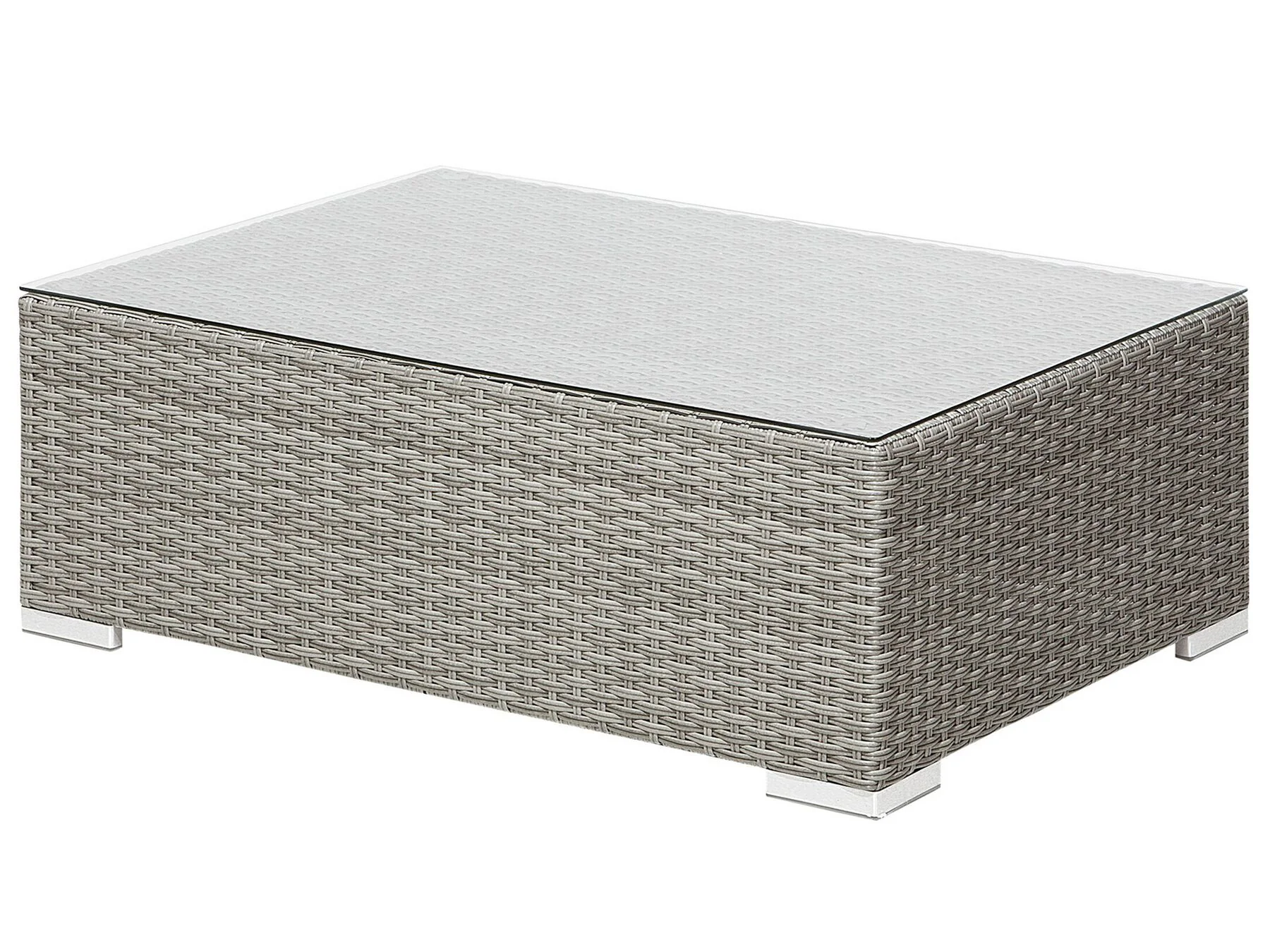 التصميم مرن، ويمكن دمج القطع أو استخدامها منفصلة. اللون يأتي بمزيج راقٍ من الرتان الأبيض مع الرمادي، ومراتب باللون الرمادي الوسط ليتناسب مع أي ديكور خارجي.