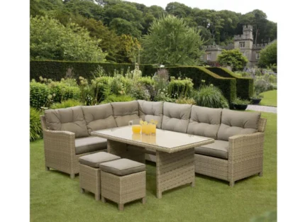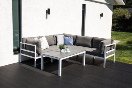 ركنة معدنية بيضاء أنيقة لجلسات خارجية للمنازل، تجمع بين التصميم العصري والخامات المقاومة للصدأ والعوامل الجوية لتمنحك أثاث خارجي يدوم بجودة عالية وأناقة مستمرة.