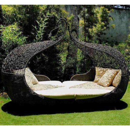 كنبه اثاث خارجي بتصميم عصري من رتان بلاستيك بلون بني أنيق، تجمع بين الراحة والمتانة لتناسب الحدائق والتراسات الراقية. مثالية لأجواء الاسترخاء والفخامة الخارجية.
