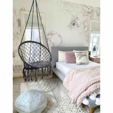 مرجيحة سقف بخيوط قطنية وهيكل حديد مطلي ضد الصدأ باللون الأسود. تصميم عصري أنيق يمنحك الراحة والفخامة في أي مساحة داخلية أو خارجية.