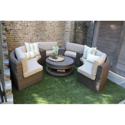 اكتشف جلسات خارجية للمنازل من الرتان البني المحروق بتصميم مودرن فاخر يجمع بين الراحة والأناقة، لتضفي لمسة فخمة على كل مساحة خارجية.