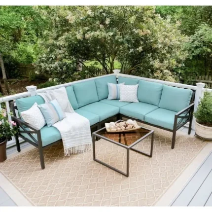 جلسات خارجية للمنازل من اثاث معدني أسود أنيق بتصميم تركواز مودرن، تجمع بين الراحة والفخامة لتجعل مساحتك الخارجية أكثر جمالًا وراحة.