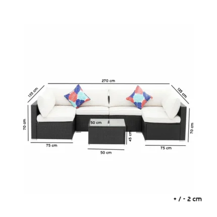 استمتع بجلسات خارجية للمنازل من الرتان الأسود والأوف وايت بتصميم مودرن أنيق ومتين يمنحك راحة وفخامة في كل زاوية من مساحتك الخارجية.