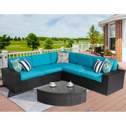اكتشف جلسات خارجية للمنازل تجمع بين الراحة والفخامة، بتصميم رتان فيراني مع قماش تركواز يناسب كل المساحات الخارجية ويضيف لمسة راقية تدوم.