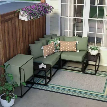 ركن بيتي حديد أنيق من طقم اثاث خارجي يجمع بين المتانة والتصميم العصري، مثالي لإضافة لمسة فخمة ومريحة لمساحتك الخارجية.