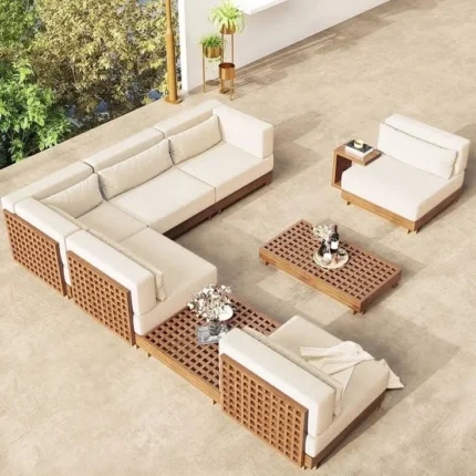 ركنة خشب مودرن بتصميم فاخر من اثاث خارجي خشبي مقاوم للمياه والحرارة، تمنحك الأناقة والراحة في كل مساحة خارجية.